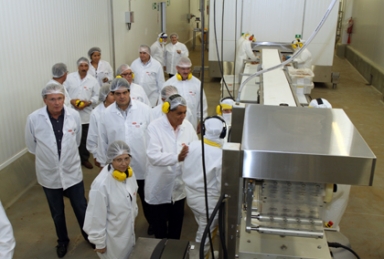 Depois de descerrar a placa inaugural e assistir à apresentação do Coral de Surdos, um dos projetos sociais da empresa, o governador e a secretária estadual de Desenvolvimento Agrário, Produção, Indústria, Comércio e Turismo, Tereza Cristina Dias, conheceram em detalhes a linha de produção do novo “bacon crispy”.