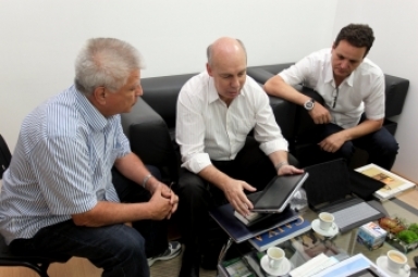 O vice-prefeito e secretário Municipal de Desenvolvimento Econômico, Ciência e Tecnologia, Turismo e do Agronegócio (Sedesc), Edil Albuquerque recebeu esta semana em seu gabinete a visita dos empresários Clovis Valério e Edison Lara, que vieram a Campo Grande para apresentar o projeto da Uninter Informática Ltda, cuja finalidade é a instalação de uma indústria na Capital, a fim de fabricar equipamentos de informática tais como desktops, notebooks e netbooks.
