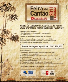 Esta é sua maior oportunidade de participar da Missão Comercial à Feira de Cantão no próximo mês de outubro/11, abrindo horizontes para novos negócios e formatação de importante rede de relacionamento.