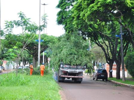 A Semsur (Secretaria Municipal de Serviços Urbanos) faz em média cem podas de árvores por dia em Dourados. O trabalho normalmente aumenta nesta época do ano por causa das frequentes chuvas e temporais que derrubam troncos e galhos.