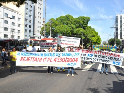 Pelo menos 90% das 1,3 mil escolas públicas em Mato Grosso do Sul ficaram sem aula por conta da paralisação dos profissionais da educação, nesta sexta-feira (30), conforme estimativa da Federação dos Trabalhadores em Educação de Mato Grosso do Sul (Fetems). Em Campo Grande, cerca de 150 trabalhadores com faixas, entre professores, representantes de movimentos sindicais e trabalhistas, participaram de protesto no Centro.